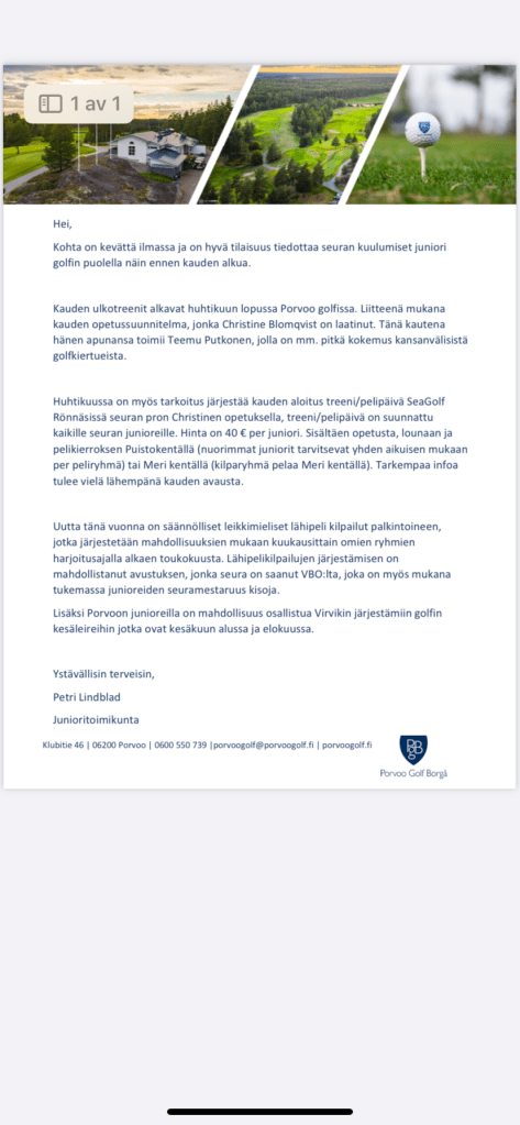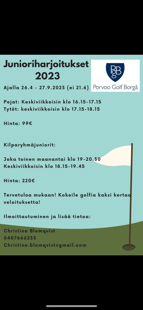Junioritoiminta Porvoo Golfissa Kirjoitettu 9 maaliskuun, 2023 julkaissut golfprochristine Jaa tämä: Click to share on X(Avautuu uudessa ikkunassa) X Jaa Facebookissa(Avautuu uudessa ikkunassa) Facebook Tykkää Lataa...