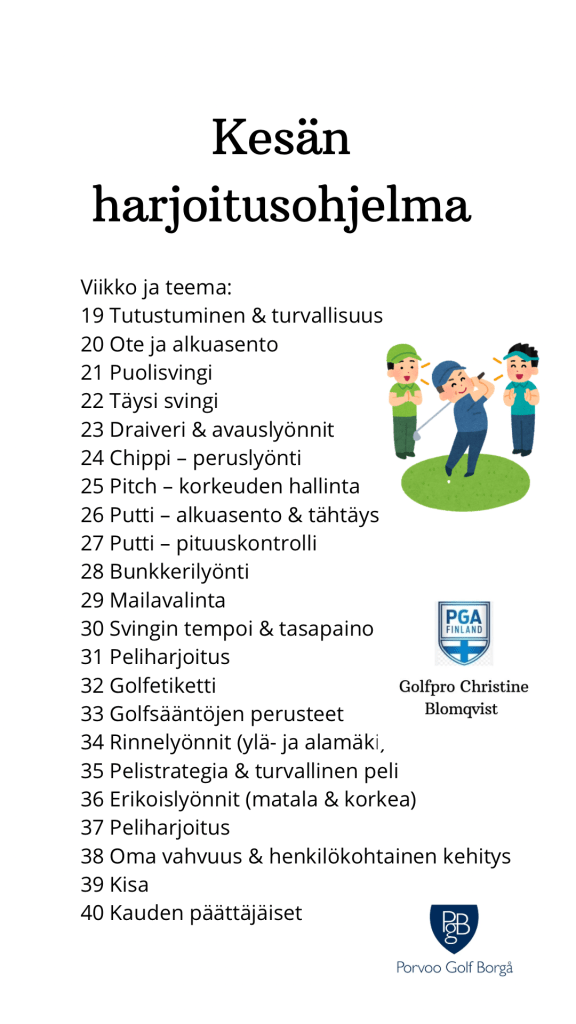 Porvoo golfin opetusohjelma 2026 / Träningsprogrammet 2026